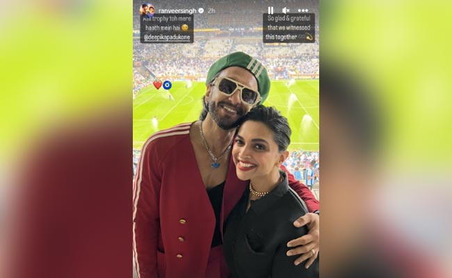 इसके अलावा रणवीर सिंह ने अपनी इंस्टा स्टोरी में कुछ और फोटोज और वीडियो पोस्ट की है, जिसके साथ उन्होंने लिखा, 'असली ट्रॉफी तो मेरे हाथ में है.' रणवीर के इस कैप्शन का इशारा दीपिका की तरफ है. वहीं दूसरे कैप्शन में रणवीर ने लिखा 'विश्व कप ट्रॉफी के साथ मेरी ट्रॉफी.' इसके कैप्शन के साथ फोटो में वह दीपिका को गले लगाए खड़े हैं. बता दें कि रणवीर सिंह की फिल्म सर्कस जल्द रिलीज होने वाली है, जिसके प्रमोशन में वह हाल ही में बिग बॉस 16 के स्टेज पर पहुंचे थे. वहीं दीपिका की अगल रिलीज पठान है.