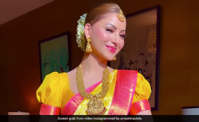 दरअसल उर्वशी ने अपने ऑफिशियल इंस्टा हैंडल पर अपने लेटेस्ट फोटोशूट की तस्वीरें और वीडियो शेयर की हैं. इन तस्वीरों में उर्वशी रौतेला रेड एंड येलो बनारसी साड़ी पहने हुए नजर आ रही हैं. अपने इस लुक के साथ उर्वशी ने गोल्डन कलर की हैवी ज्वेलरी कैरी की हुई है. अपने इस अवतार में उर्वशी खूबसूरती को समेटे हुए देखी जा सकती हैं. बालों में जूड़ा और गजरा उनकी खूबसूरती पर चार चांद लगा रहा है, तो वहीं उनकी दिलकश अदाएं किसी को भी दीवाना बना सकती हैं. कुल मिलाकर अपने इस लुक में उर्वशी बहुत ही एलिगेंट और गॉर्जियस दिख रही हैं.