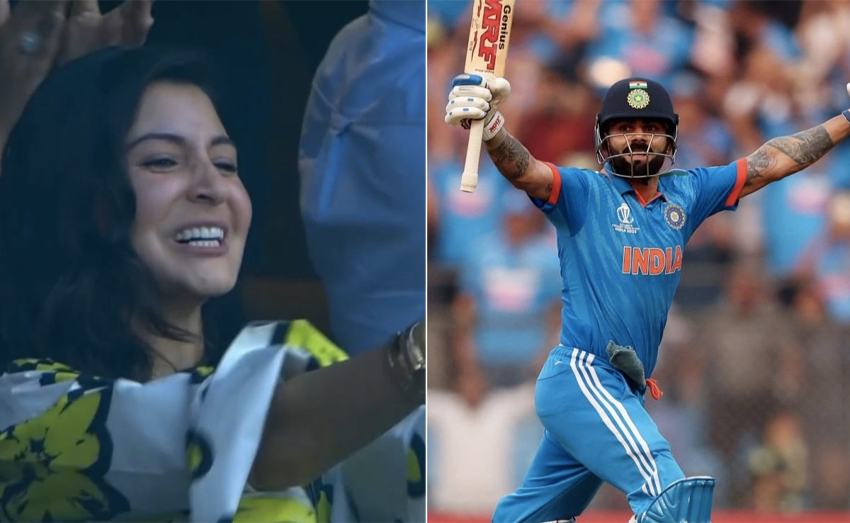 विराट कोहली की इस शानदार पारी के बाद उनकी पत्नी एक्ट्रेस अनुष्का शर्मा ने शानदार अंदाज में रिएक्शन दिया. स्टेडियम में बैठी एक्ट्रेस ने पति का शतक पूरा होते ही सीट से खड़ी हो गईं और जमकर तालियां बजाने लगीं और फ्लाइंग किस करने लगीं. सोशल मीडिया पर अनुष्का शर्मा का वीडियो तेजी से वायरल हो रहा है. उनके कई फैंस वीडियो को पसंद कर रहे हैं. साथ ही कमेंट कर अपनी प्रतिक्रिया दे रहे हैं.