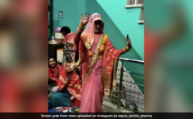 इंस्टाग्राम पर शेयर हुए वीडियो में पिंक कलर की साड़ी और रेड शॉल ओढ़े ये नई नवेली दुल्हन झूम-झूम कर डांस करती नजर आती है. हाथों में मेहंदी और लाल चूड़ियों में सजी ये दुल्हन अपनी परंपरा नहीं छोड़ती और घूंघट में ही कमर मटका-मटका कर खूब नाचती है. इस नई दुल्हन के डांस स्टेप्स भी काफी कमाल के नजर आते हैं. वीडियो में देखा जा सकता है कि दुल्हन के डांस से खुश होकर वहां मौजूद औरतें उस पर पैसे न्योछावर करती हैं.