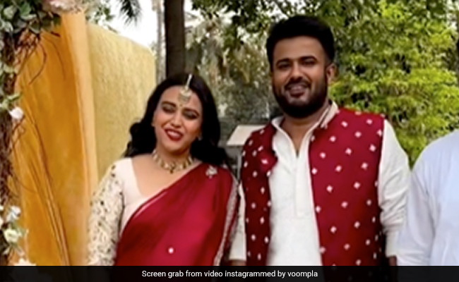 इंस्टाग्राम पर सामने आए वीडियो में स्वरा लाल रंग की साड़ी में दुल्हन की तरह सजी हुई नजर आ रही हैं. वहीं फहाद अहमद व्हाइट कुर्ते के साथ रेड जैकेट पहने दिख रहे हैं. हाथों में हाथ डाले ये जोड़ी काफी खूबसूरत नजर आ रही है. तस्वीर के लिए पोज करते हुए फहाद ने कहा कि भाई शादी अभी मार्च में होनी है. इस पर स्वरा कहती हैं, पिक्चर अभी बाकी है मेरे दोस्त.