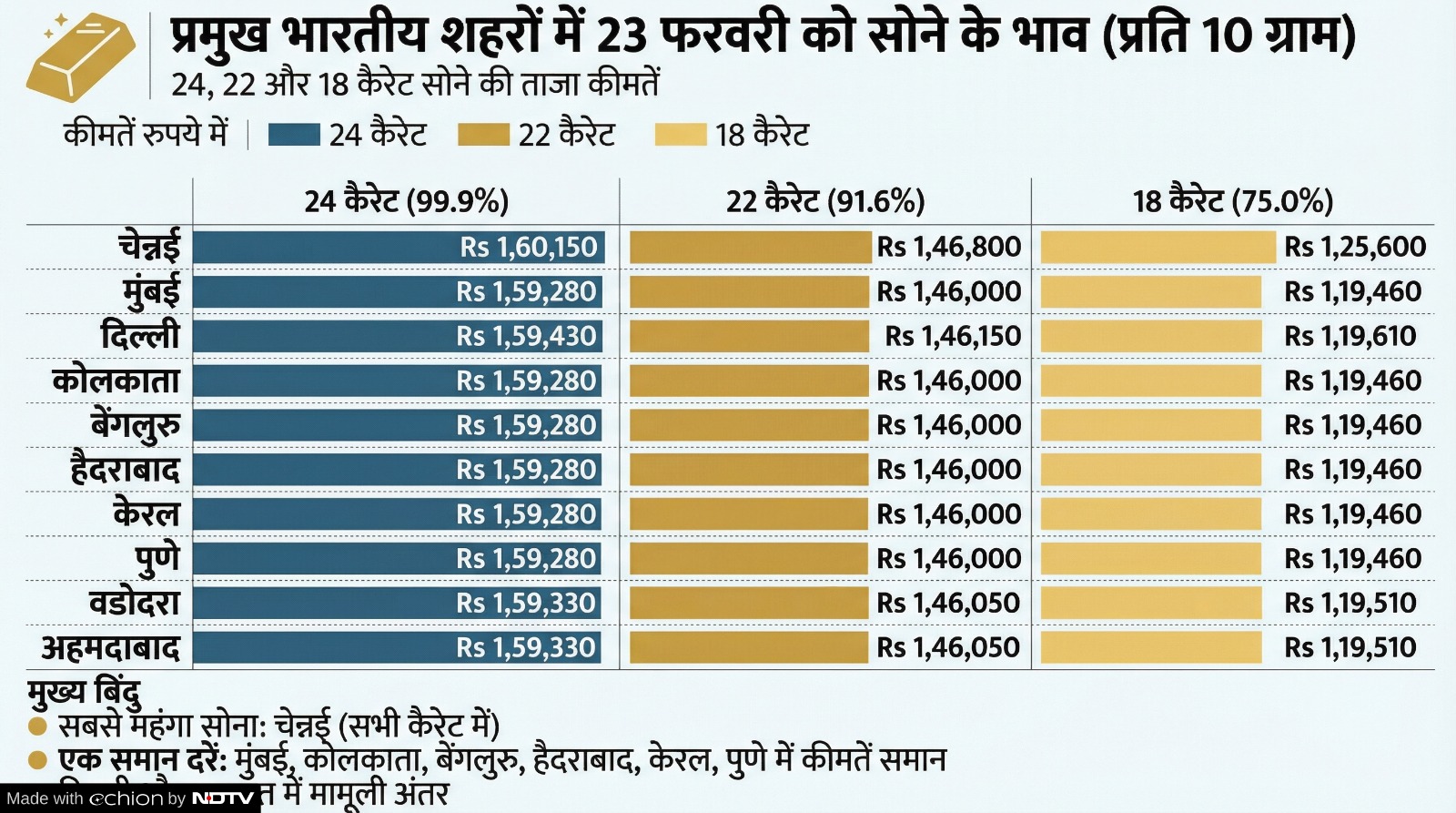 चेन्नई के सर्राफा बाजार से आज यानी 23 फरवरी को सोने और चांदी के शुरुआती भाव सामने आ गए हैं.