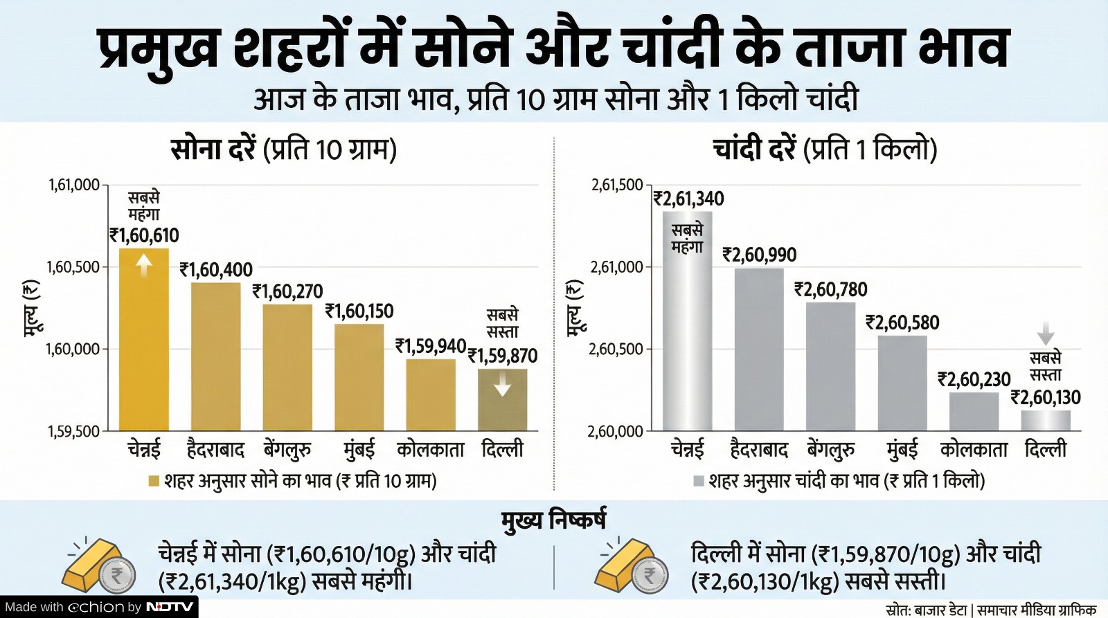 पिछले कुछ समय में सोने और चांदी की कीमतों में काफी उतार-चढ़ाव देखने को मिला है, जिसकी वजह ग्लोबल बाजार, डॉलर की चाल और निवेशकों की मांग मानी जा रही है.ऐसे में आज 24 कैरेट और 22 कैरेट सोने का ताजा भाव क्या है, चांदी कितने में मिल रही है और आपके शहर में रेट कितना चल रहा है, अगर आप आज सोने-चांदी की खरीदारी करने वाले हैं या निवेश का प्लान बना रहे हैं, तो यहां हम आपको हर पल बदलते दाम, कमोडिटी मार्केट का ट्रेंड और एक्सपर्ट की सलाह की हर अपडेटस इस लाइव ब्लॉग में दे रहे हैं...