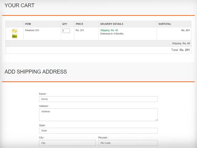 बता दें कि कंपनी ने इसे भारत का सबसे सस्ता स्मार्टफोन बताया है। माना जा रहा है कि मात्र 251 रुपये की कीमत वाला यह स्मार्टफोन दुनिया का भी सबसे सस्ता स्मार्टफोन है। फ्रीडम 251 एंड्रॉयड 5.1 लॉलीपॉप से लैस है। इस फोन की बुकिंग गुरुवार को सुबह 6 बजे से शुरू होनी थी।