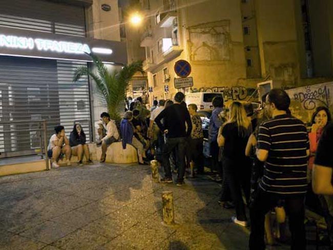 ग्रीस के एक एटीएम के बाहर लगी लंबी लाइन