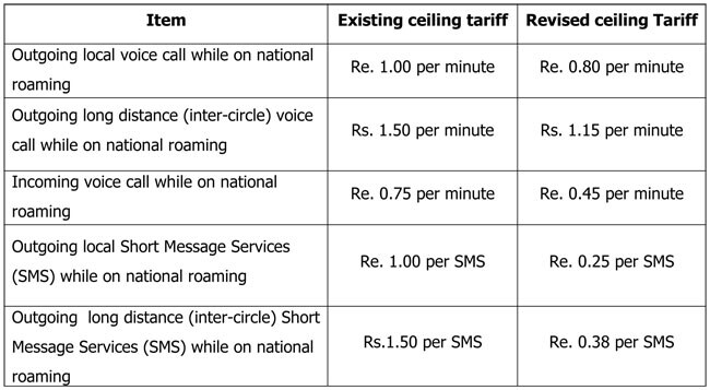 रोमिंग पर लोकल एसएमएस 25 पैसे का होगा। रोमिंग पर इंटर सर्किल कॉल 1.38 रु. प्रति मिनट की दर से चार्ज की जाएगी।