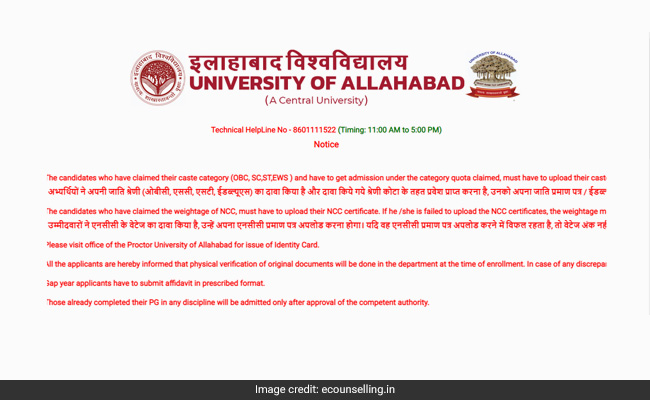 एडमिशन नोटिफिकेशन के साथ, इलाहाबाद विश्वविद्यालय द्वारा विभिन्न पाठ्यक्रमों के लिए कट-ऑफ अंक भी घोषित किए गए हैं.