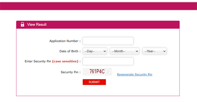 - अपने एप्लीकेशन नंबर और जन्म तिथि दर्ज करें और सबमिट करें