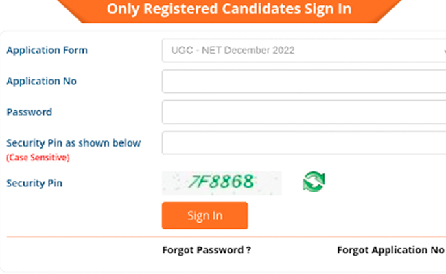3.यूजीसी नेट लॉगिन पेज पर, अपना एप्लिकेशन नंबर और पासवर्ड दर्ज करें.
