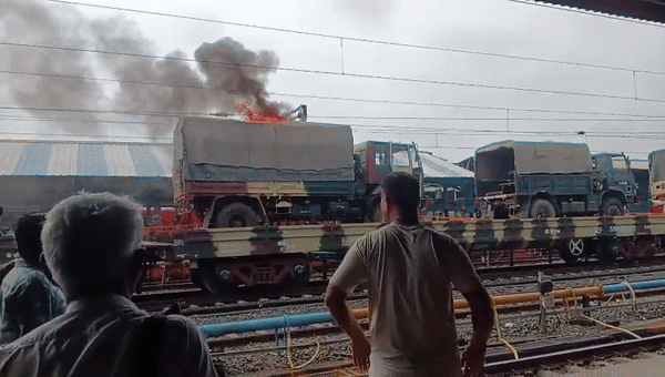 दरअसल, आर्मी स्पेशल मालगाड़ी में भोपाल से जोधपुर सेना के जवान और आर्मी के करीब एक दर्जन आर्मी के लोडेड ट्रकों में सामान ले जाया जा रहा था. यह मालगाड़ी रविवार सुबह 8.48 बजे जैसे ही प्लेटफार्म नंबर 2 पहुंची एक ट्रक में आग लग गई. आगजनी होते ही मौके पर मौजूद आरपीएफ ने सक्रियता दिखाते हुए आग बुझाना शुरू कर दिया. करीब 20 मिनट की मशक्कत के बाद आंख पर पूरी तरह काबू पा लिया गया.