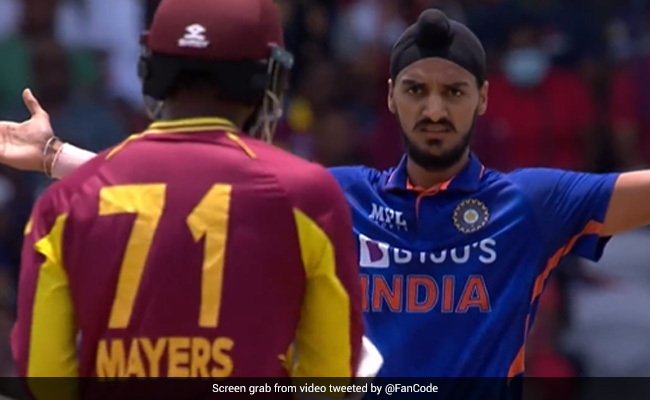अर्शदीप ने इस विकेट का जोरदार तरीके से जश्न मनाया और क्रीज छोड़कर जा रहे मेयर्स को बाहें फैला कर आंखे दिखाई