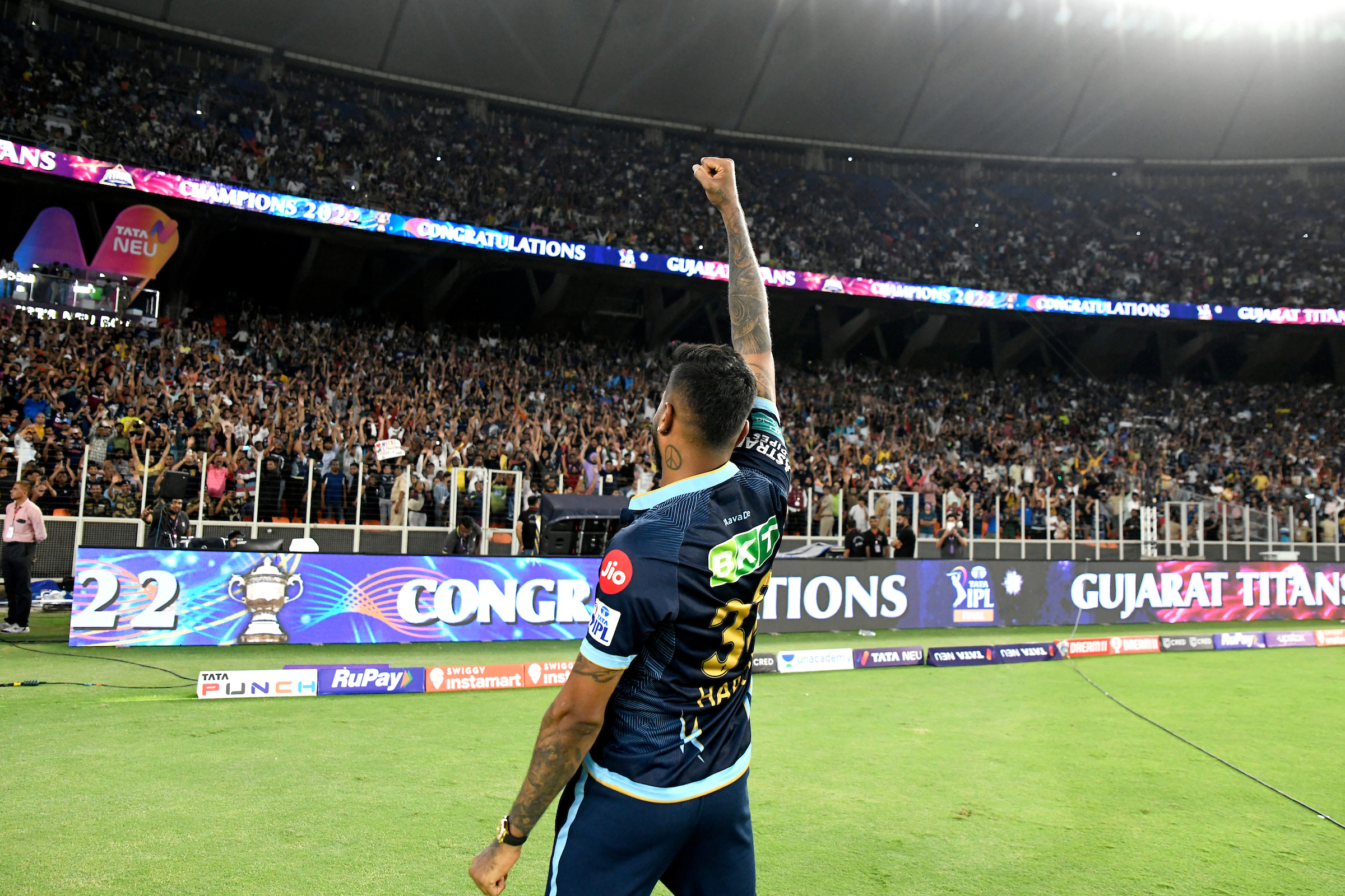 हार्दिक ने आईपीएल 2022 में 487 रन बनाने के अलावा आठ विकेट भी चटकाए. फाइनल में उनके शानदार प्रदर्शन की बदौलत टाइटंस ने रॉयल्स को नौ विकेट पर 130 रन के स्कोर पर रोक दिया. हार्दिक ने 34 रन की अहम पारी भी खेली जिसके बाद शुभमन गिल (नाबाद 45 रन) और डेविड मिलर (नाबाद 32 रन) ने टीम को लक्ष्य तक पहुंचाया. टाइटंस ने 18.1 ओवर में जीत दर्ज की.