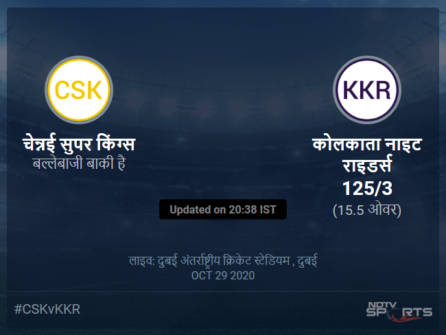 14.6 ओवर (2 रन) एक बार फिर से गेंद को लेग साइड पर फ्लिक किया लेकिन इस बार गैप से दो रन हासिल कर लिए| 15 के बाद 106/3 कोलकाता| यहाँ से बाकी बचे पांच ओवर में कुछ बड़े शॉट्स ज़रूर देखने को मिलेंगे|