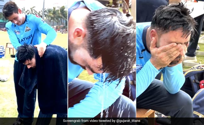 गुजरात (GT) की टीम ने अपने सोशल मीडिया अकाउंट से एक वीडियो शेयर किया है जिसमें टीम के खिलाड़ी भयंकर गर्मी से दो-दो हाथ करते हुए नजर आ रहे हैं. राशिद खान प्रैक्टिस के दौरान अपने सिर पर पानी डालते हुए नजर आ रहे हैं. एक अन्य वीडियो में सिर पर टावल डाल कर बैठे हुए दिखाई दे रहे हैं.