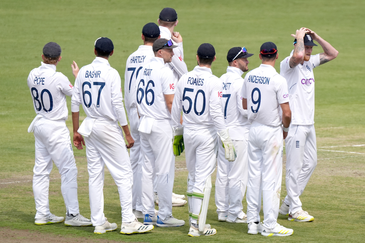 इंग्लैंड की प्लेइंग इलेवन: जैक क्रॉली, बेन डकेट, ओली पोप, जो रूट, जॉनी बेयरस्टो, बेन स्टोक्स (कप्तान) बेन फॉक्स (विकेटकीपर), टॉम हार्टले, मार्क वुड, जेम्स एंडरसन, शोएब बशीर.