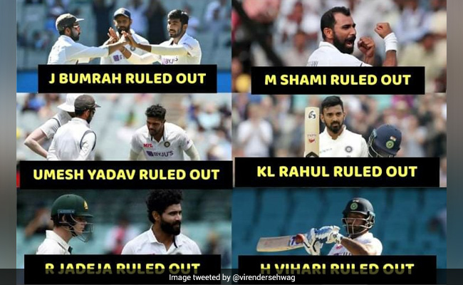 अब जब भारतीय टीम के इतने खिलाड़ी चौथे टेस्ट से पहले हैं तो सहवाग ने भारतीय प्लेइंग इलेवन को लेकर तंज कसा है. ब्रिसबेन टेस्ट मैच से पहले जसप्रीत बुमराह और हनुमा विहारी के साथ-साथ रविंद्र जडेजा भी चोटिल हो गए हैं. जिसके कारण भारतीय टीम को चौथे टेस्ट में अपने प्लेइंग इलेवन में बदलाव करने होंगे. उसी पेंच को देखते हुए सहवाग ने यह मजाकिया ट्वीट किया है. भारत और ऑस्ट्रेलिया के बीच सीरीज का आखिरी टेस्ट 15 जनवरी को खेला जाएगा.