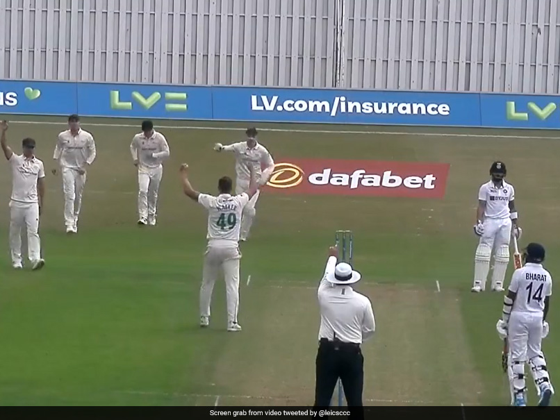 फुल लेंथ की गेंद को खेलने की कोशिश में बॉल कोहली के बल्ले के पीछे लीसेस्टरशायर के विकेटकीपर के हाथों में चली गई. गेंदबाज ने जोर देते हुए अपील की और अंपायर ने अपनी उंगली उठाकर उन्हें आउट करार दिया. अपील की शुरुआत में कोहली निश्चिंत नजर आ रहे थे लेकिन आउट दिए जाने पर वो हैरान रह गए. कोहली ने अंपायर से उनके फैसले के बारे में जाकर पूछा, जिन्होंने कोहली को बताया कि वो LBW आउट हैं. उनके बाद भारतीय बल्लेबाज ने पवेलियन का रुख किया.