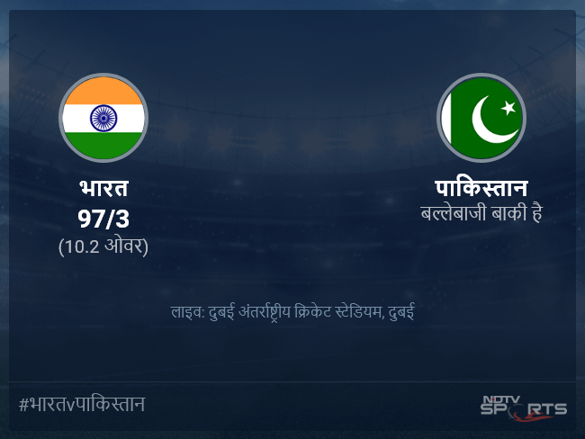 9.4 ओवर (0 रन) आउट!! कैच आउट!!! कॉट आसिफ अली बोल्ड मोहम्मद नवाज| सबसे बड़ी विकेट कही जा सकती है क्योंकि स्काई काफी फॉर्म में थे| महज़ 13 के स्कोर पर स्काई के विकेट का पतन हो गया| अपने पसंदीदा शॉट पर अपना विकेट गंवा बैठे| विकेट लाइन पर डाली गई गेंद को स्वीप किया स्क्वायर लेग बाउंड्री की तरफ| हल्का धीमी गति की वजह से उछाल के साथ बल्ले के उपरी हिस्से पर लगकर हवा में गई गेंद| फील्डर बॉल के नीचे आये और एक आसान सा कैच पकड़ लिया| 91/3 भारत|