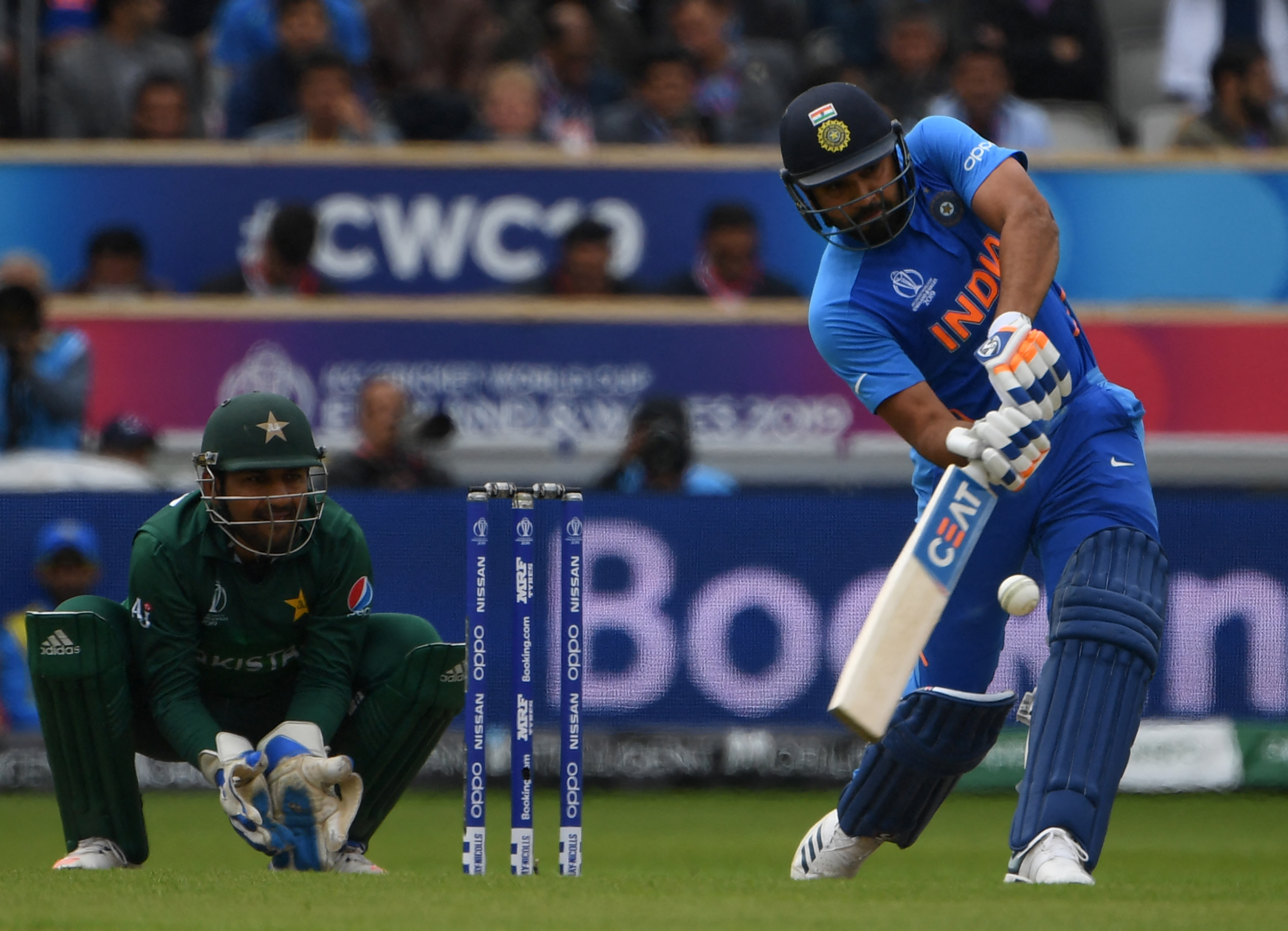 पाकिस्तान को 2019 में रोहित के तूफानी तेवरों का सामना करना पड़ा जिन्होंने 113 गेंद में 140 रन की पारी खेली. कोहली (77) और लोकेश राहुल (57) ने भी अर्धशतक जड़े. रोहित ने तेज गेंदबाज हसन अली को विशेष रूप से निशाने पर रखा जिनकी वाघा सीमा पर जांघ पर हाथ मारकर जश्न मनाने के लिए तीखी आलोचना हुई थी. भारतीय प्रशंसकों ने भी हसन के खिलाफ रोहित के करारे शॉट का खूब लुत्फ उठाया.