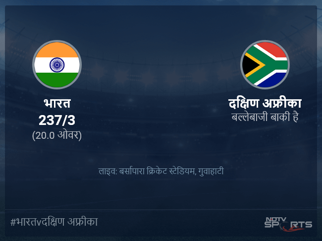 जिसके बाद मैदान पर आए सूर्यकुमार यादव (61) ने ताबड़तोड़ अंदाज़ बल्लेबाज़ी करते हुए अपना महज़ 18 गेंदों पर अर्धशतक पूरा किया और कोहली के साथ मिलकर तीसरे विकेट के लिए 102 रनों की साझेदारी कर दी| हालाँकि स्काई एक रन लेने के प्रयास में रन आउट हो गए| वहीँ अंत में किंग कोहली (49) ने शानदार बल्लेबाज़ी का नमूना पेश किया और दिनेश कार्तिक (17) के साथ मिलकर टीम के स्कोर को 237 रनों तक पहुँचाया| इसी बीच अफ़्रीकी टीम के कप्तान टेम्बा बवुमा ने कुल 6 गेंदबाजों का इस्तेमाल किया जिसमे से उन्हें केशव महाराज ने 2 विकेट निकालकर दिया| वहीँ और किसी भी गेंदबाज़ के हाथ सफ़लता नहीं लग सकी| ऐसे में अब देखना होगा कि क्या अफ़्रीकी टीम इस 238 रनों के विशाल लक्ष्य को हासिल करने में कामयाब हो पाएगी? या फिर भारतीय टीम 237 रनों को डिफेंड करते हुए सीरीज़ पर अपना कब्ज़ा जमाते हुए इतिहास रच देगी| इन सभी सवालों के जवाब हमें रन चेज़ में मिल जायेंगे|
