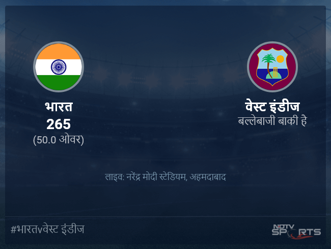 49.6 ओवर (0 रन) आउट!! क्लीन बोल्ड!! एक और विकेट होल्डर के खाते में गई| भारत 265 रनों पर ऑल आउट हो गया| यानी अब विंडीज़ के सामने 266 रनों का लक्ष्य है| इस गेंद पर सिराज ऑफ़ स्टम्प पर जाकर फाइन लेग की तरफ मारने गए, धीमी गति की गेंद से चकमा खा गए और बॉल जाकर मिडिल स्टम्प को हिट कर गई| इसी के साथ टीम इंडिया की पारी का हुआ अंत, होल्डर के खाते में गई चौथी सफलता|