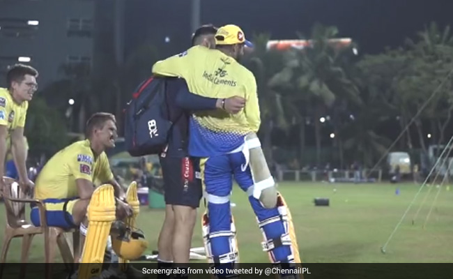 इस हाईवोल्टेज मुकाबले से पूर्व चेन्नई सुपर किंग्स की टीम ने एक वीडियो अपने आधिकारिक ट्विटर अकाउंट से शेयर किया है. इस वीडियो में प्रैक्टिस सेशन के दौरान दोनों टीमों के खिलाड़ी एक दूसरे से मिलते हुए नजर आ रहे हैं. सीएसके द्वारा शेयर किए गए वीडियो में आरसीबी के अनुभवी बल्लेबाज विराट कोहली जहां विपक्षी टीम के कप्तान रविंद्र जडेजा को गले लगाते हुए नजर आ रहे हैं, वहीं आरसीबी के मौजूदा कप्तान फाफ डुप्लेसिस भी अपने पुराने साथियों के साथ बातचीत और गले लगाते हुए नजर आ रहे हैं.