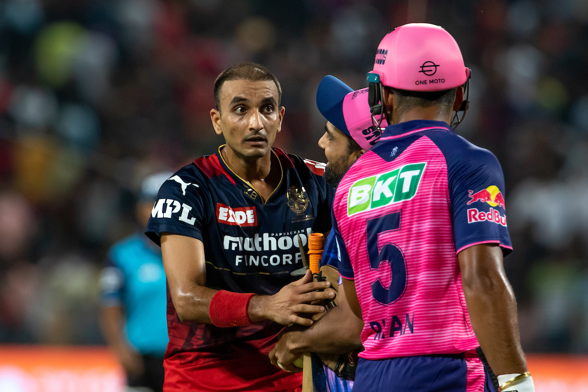 आईपीएल 2022 (IPL 2022) का एक अहम मुकाबला बीते कल राजस्थान रॉयल्स (Rajasthan Royals) और रॉयल चैलेंजर्स बैंगलोर (Royal Challengers Bangalore) के बीच पुणे स्थित महाराष्ट्र क्रिकेट एसोसिएशन स्टेडियम में खेला गया. इस मुकाबले में आरसीबी की टीम को 29 रनों से शिकस्त का सामना करना पड़ा. मैच के दौरान आरसीबी के तेज गेंदबाज हर्षल पटेल (Harshal Patel) और आरआर के युवा बल्लेबाज रियान पराग (Riyan Parag) के बीच जुबानी जंग भी देखी गई.