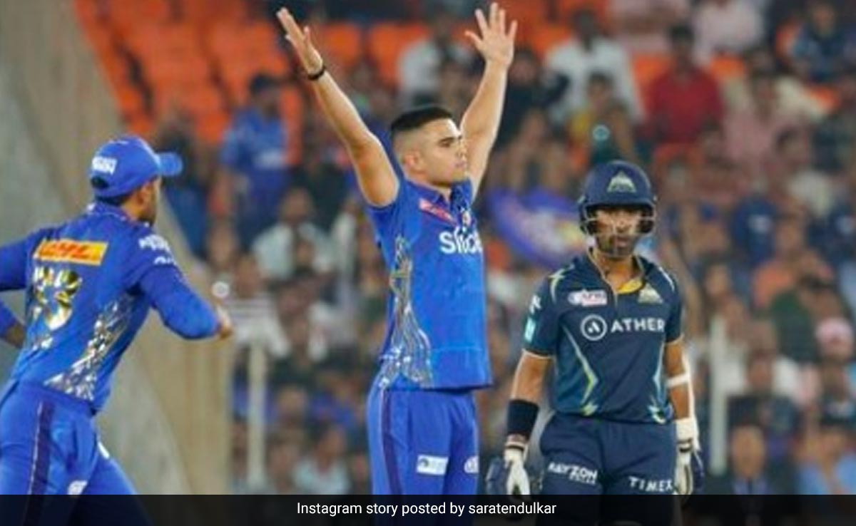 Arjun Tendulkar gets Wriddhiman Saha: भले ही गुजरात टाइटंस के (GT IPL) खिलाफ मुंबई इंडियंस (Mumbai Indians) को हार का सामना करना पड़ा लेकिन मैच में अर्जुन तेंदुलकर ने शानदार गेंदबाजी की और ऋद्धिमान साहा (Wriddhiman Saha) को आउट करने में सफलता पाई. साहा को अर्जुन ने ईशान किशन के हाथों कैच कराकर पवेलियन भेजा. मैच में अर्जुन ने 2 ओवर की गेंदबाजी की और 9 रन देकर एक विकेट लेने में सफल रहे. इस मैच में अर्जुन को पहली बार बैटिंग करने का मौका मिला और 9 गेंद पर 13 रन भी बनाए, अर्जुन ने बल्लेबाजी के दौरान एक शानदार छक्का भी जमाया. वहीं, एक बार फिर अर्जुन को लेकर सारा तेंदुलकर (Sara Tendulkar) ने रिएक्ट किया है और इंस्टा स्टोरी पर अपने भाई के सपोर्ट में तस्वीर शेयर की है जिसमें आग की इमोजी भी लगी हुई है.