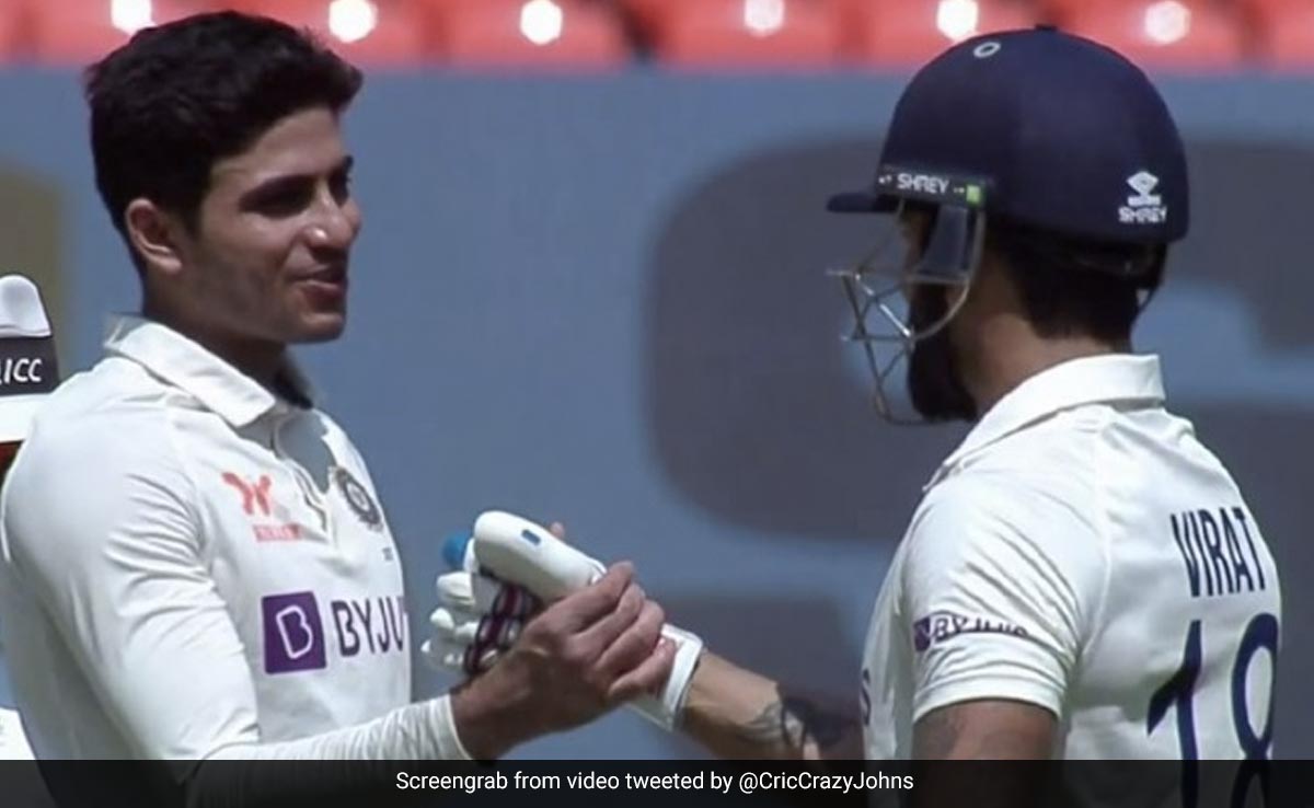 Shubman Gill and Virat Kohli: शुभमन गिल ने अपने टेस्ट करियर का दूसरा शतक जमाया. ऑस्ट्रेलिया के खिलाफ चौथे टेस्ट मैच में गिल ने 194 गेंद पर शतक ठोका, शतक जमाने के बाद अपने ही अंदाज में गिल ने जश्न मनाया तो वहीं भारतीय खेमा गिल के शतक जमाने पर खुशी से झूम उठा. बता दें कि गिल ने शतक लगाया तो वहीं उसी ओवर के आखिरी गेंद पर पुजारा को मर्फी ने LBW आउट कर पवेलियन भेजा. पुजारा के आउट होने पर कोहली बल्लेबाजी के लिए आए. बैटिंग के लिए पिच पर पहुंचते ही सबसे पहले उन्होंने गिल को उनके दूसरे शतक के लिए बधाई दी. गिल के प्रति कोहली के जेस्चर ने फैन्स का दिल जीत लिया है. सोशल मीडिया पर कोहली और गिल की तस्वीर खूब वायरल हो रही है.