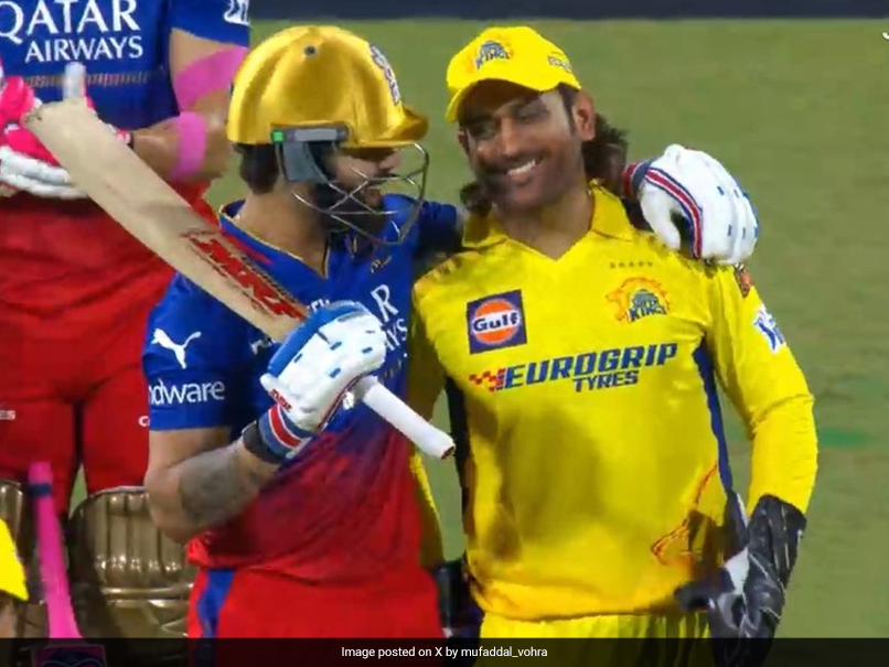MS Dhoni Virat Kohli viral video: आईपीएल 2024 (IPL 2024) के पहले मैच में सीएसके ने आरसीबी (CSK vs RCB) को 6 विकेट से हरा दिया. बता दें कि इस मैच मे 86 दिन के बाद कोहली (Kohli) मैदान पर उतरे थे. मैच में आरसीबी ने टॉस जीतकर पहले बल्लेबाजी करने का फैसला किया था. ऐसे में जब कोहली और फाफ ने आरसीबी के लिए ओपनिंग बल्लेबाज की भूमिका निभाई. बता दें कि जब कोहली बल्लेबाजी करने आए तो सबसे पहले धोनी के पास गए और उन्हें गले लगाया. सोशल मीडिया पर यह वीडियो खूब वायरल हो रहा है. फैन्स धोनी और कोहली (Dhoni or kohli) के इस वीडियो को देखकर लगातार रिएक्ट कर रहे हैं. बता दें कि हाल ही में कोहली दूसरी बार पिता बने हैं. वहीं, जब मैच खत्म हुआ तो भी कोहली माही से बड़े ही प्यार भरे अंदाज से मिलते हुए नजर आए. सोशल मीडिया पर फैन्स धोनी और कोहली को एक साथ देखकर गदगद हैं.