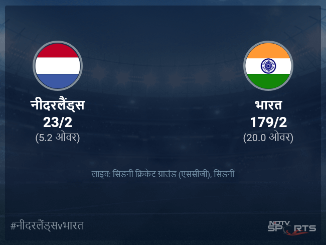 3.6 ओवर (2 रन) दो रनों के साथ शमी के ओवर की हुई समाप्ति| पैड्स की गेंद को मिड विकेट की दिशा में खेला| गैप से दो रन बटोर लिया| 4 के बाद 19/1 नीदरलैंड|