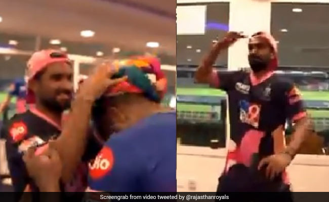 IPL 2020: RR Vs KXIP: आईपीएल 2020 (IPL 2020) का सबसे रोमांचकारी मैच 27 सितंबर को देखने को मिला जब राजस्थान रॉयल्स (RR) ने किंग्स इलेवन ंपंजाब (KXIP) को 4 विकेट से हरा दिया. जीत के बाद राजस्थान के खिलाड़ियों ने जमकर मस्ती की. राजस्थान रॉयल्स (Rajasthan Royals)ने ट्विटर पर वीडियो शेयर किया है जिसमें राजस्थान के खिलाड़ी मैच को लेकर अपने अनुभव शेयर कर रहे हैं. कप्तान स्टीव स्मिथ (Steve Smith) ने भी खिलाड़ियों के द्वारा किए गए शानदार परफॉर्मेंस को लेकर बात की और संजू सैमसन (Sanju Samson) की पारी की जमकर तारीफ की. वीडियो में राहुल तेवतिया (Rahul Tewatia) पंजाब के गेंदबाज शेल्डन कॉटरेल (Sheldon Cottrell) की नकल भी उतारते नजर आए. राजस्थान के द्वारा शेयर की गई वीडियो में खिलाड़ी अपने पसंद के खिलाड़ी को राजस्थानी पगड़ी पहनाते हुए भी दिखाई दे रहे हैं. राजस्थान के खिलाड़ी इस से काफी खुश हैं और अगले मैच की तैयारी में लग गए हैं.