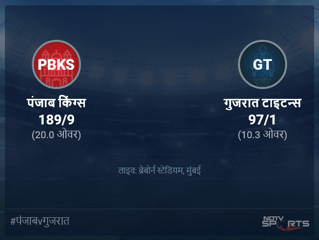 टाइम आउट का हुआ समय!! ढाई मिनट का ब्रेक!! 9 के बाद 88/1 गुजरात, 66 गेंदों पर 102 रनों की दरकार, अब यहाँ से दोनों टीमें आगे की रणनीति बनाएगी...
