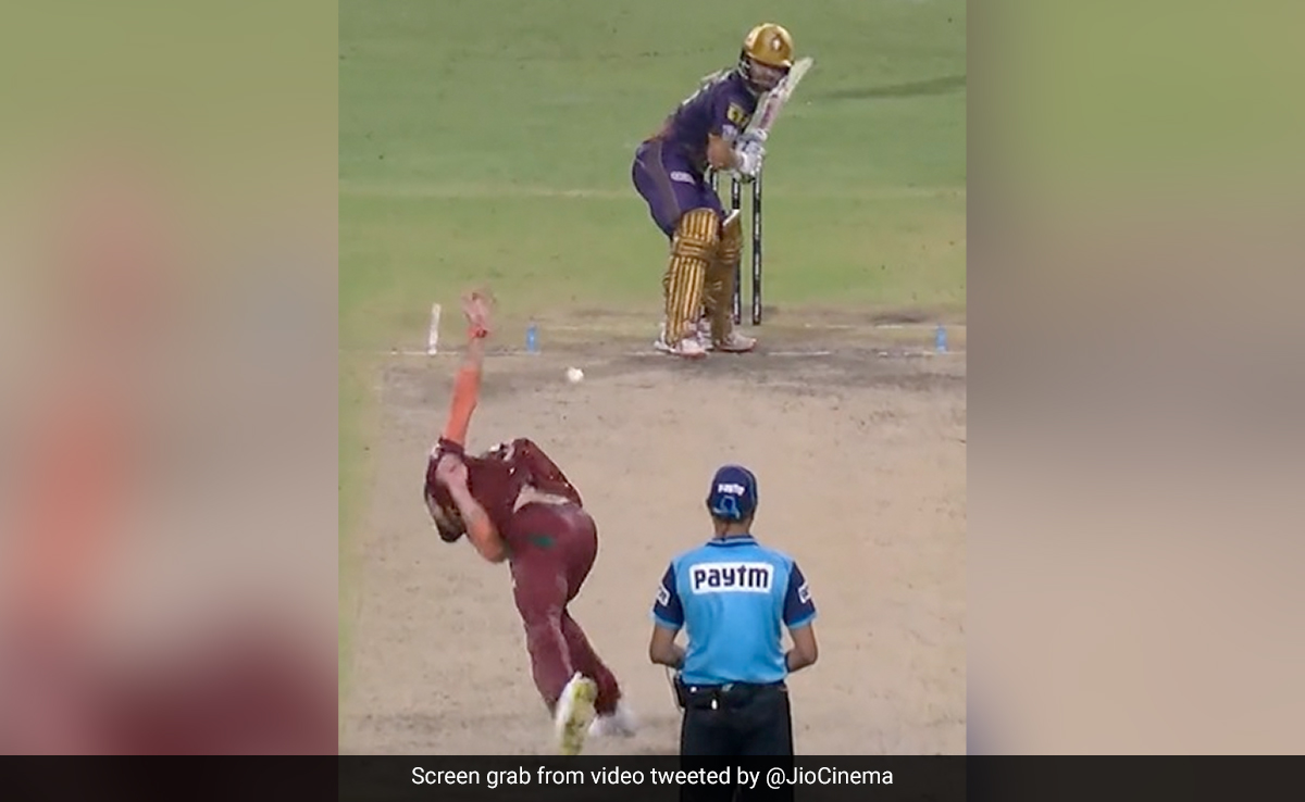 चौथी गेंद पर - यश ने रिंकू के खिलाफ यॉर्कर करने की कोशिश की लेकिन सही लाइन पर गेंद करने से चूक गए जिसका फायदा केकेआर के बाजीगर ने उठाया और डीप मिड विकेट शानदार छक्का लगा दिया.