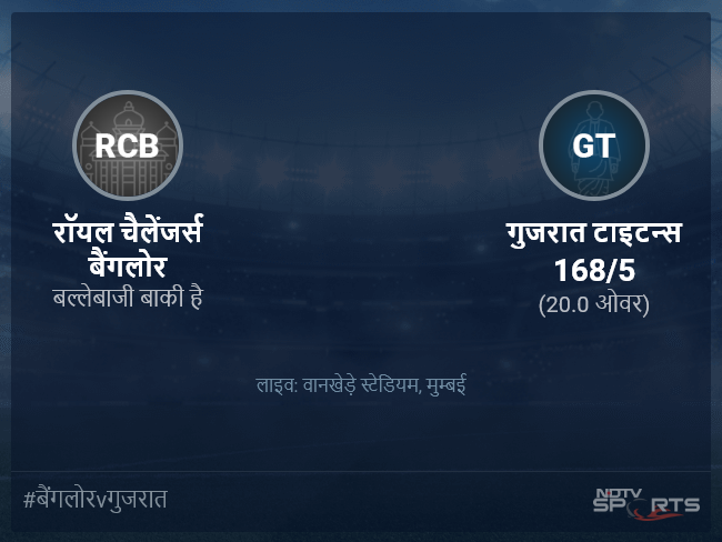 अंत तक कप्तान हार्दिक पंड्या (62) ने अपनी ज़िम्मेदारी को समझकर बल्लेबाज़ी की और अर्धशतक भी लगा दिया| वहीँ राशिद खान (19) ने भी अपने कप्तान का साथ देते हुए कुछ बाउंड्री लगाकर टीम के स्कोर को 168 रनों तक पहुँचाया| इसी बीच फाफ डु प्लेसिस ने कुल 7 गेंदबाजों का इस्तेमाल किया जिसमे से उन्हें जोस हेज़लवुड ने 2 विकेट निकालकर दिया जबकि वनिन्दु हसरंगा और ग्लेन मैक्सवेल के हाथ 1-1 विकेट आई| बैंगलोर के लिए हर्षल पटेल का चोटिल होना नुकसानदायक रहा उन्होंने अपने स्प्ले में बस एक ही ओवर डाले| शायद अगर वो मैदान के बाहर नहीं जाते तो अंतिम के कुछ ओवरों में रन गति पर गिरावट आती| अब देखना होगा कि बैंगलोर की टीम 169 रनों के लक्ष्य को कितनी जल्दी हासिल करते हुए अपने रन रेट को बेहतर करती है और 2 अहम अंक अर्जित कर लेती है|