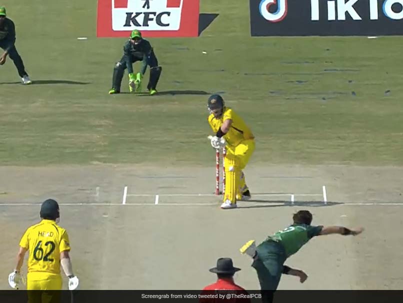ऑस्ट्रेलिया ने पहले बल्लेबाजी करते हुए 8 विकेट के नुकसान पर निर्धारित 50 ओवर में 348 रन बनाए. ऑस्ट्रेलिया की तरफ से बेन मैकडरमोट ने शानदार शतकीय पारी खेली. पहले ही ओवर में जब शाहीन शाह (Shaheen Afridi) अफरीदी और ऑस्ट्रेलिया के कप्तान एरोन फिंच जब आमने सामने आए तो नजारा देखने लायक था. पहली ही गेंद पर शाहीन अफरीदी ने फिंच को एलबीडब्ल्यू आउट कर दिया. गेंद फिंच के सामने के पैर में लगी और अंपायर ने अपनी उंगली उठाने में कोई देरी नहीं की.