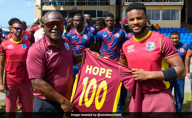 95 रनों के स्कोर पर उन्होंने युजवेंद्र चहल की गेंद पर छक्का लगाकर अपना शतक पूरा किया. अपने 100वें मैच में शतक जड़ने वाले होप चौथे खिलाड़ी बन गए हैं.