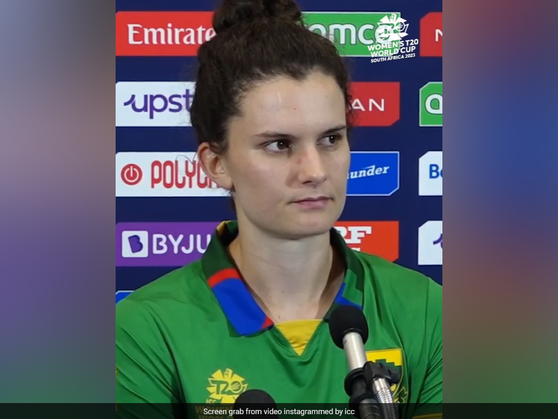 Women's T20 World Cup: साउथ अफ्रीका की क्रिकेटर लौरा वोल्वार्ट (Laura Wolvaardt) के साथ प्रेस कांफ्रेंस के दौरान कुछ ऐसा हुआ जिसे देखकर लोगों की हंसी छूट आई. यही नहीं खुद महिला क्रिकेटर लौरा भी खुद पर हंसे बिना नहीं रह सकी. आईसीसी ने इसका वीडियो भी शेयर किया है. दरअसल, महिला टी-20 वर्ल्ड कप के आखिरी ग्रुप मैच में साउथ अफ्रीका ने बांग्लादेश को 10 विकेट से रौंदकर सेमीफाइनल में प्रवेश कर लिया है. मैच के बाद साउथ अफ्रीकी क्रिकेटर लौरा वोल्वार्ट ने मीडिया से बात की.