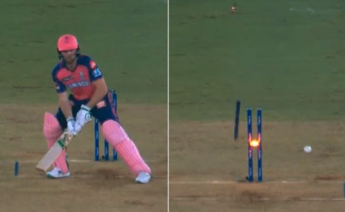 मोहम्मद शमी के दूसरे ओवर की पांचवी गेंद पर जोस बटलर ने स्कूप शॉट खेलकर बाउंड्री लेनी चाही. इसके लिए बटलर ने स्टंप्स छोड़ दी थी और ऑफ साइड की तरफ आ गए थे. शमी की गेंद इन स्विंग हुई और गेंद सीधे विकेट को लगी. बटलर का करामाती शॉट खेलने का फैसला गलत साबित हुआ. बटलर अपने आईपीएल करियर में दूसरी बार शून्य के स्कोर पर आउट हुए. जोस बटलर के इस विकेट से राजस्थान मुश्किल में आ गई और टीम पावर प्ले में सिर्फ 26 रन ही बना पाई.