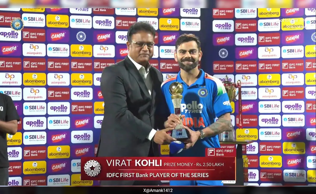 - कोहली ने प्लेयर ऑफ द सीरीज का बीसवां अवॉर्ड जीतकर सचिन तेंदुलकर का रिकॉर्ड तोड़ा है