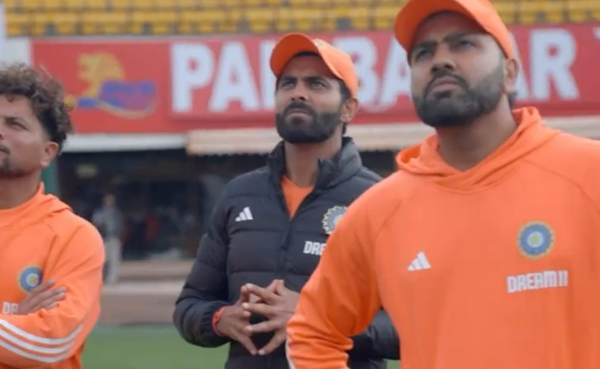 अगले महीने अमेरिका-विंडीज में आयोजित होने वाले टी20 विश्व कप (T20 World Cup 2024) के लिए भारतीय टीम की जर्सी को बहुत ही स्पेशल अदाज में लॉन्च किया गया. होने वाली मेगा इवेंट में भी भारतीय खिलाड़ी एडिडास कंपनी की जर्सी पहनेंगे. इसी को लेकर कंपनी ने सोमवार को आधिकारिक X अकाउंट पर एक वीडियो पोस्ट किया. वीडियो में कप्तान रोहित शर्मा (Rohit Sharma), रवींद्र जडेजा और कुलदीप यादव मैदान पर खड़े हैं. इसी दौरान एक हेलीकॉप्टर टीम की जर्सी के साथ उड़ान भरता है. और फिर रोहित दोनों खिलाड़ियों की तरफ इशारा करते हैं.