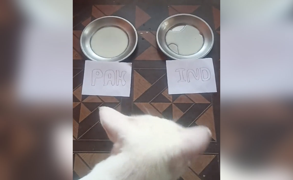 दरअसल फैन ने बिल्ली के सामने दो कटोरियों में एक खाद्य पदार्थ रखा है. एक कटोरी पर पाकिस्तान लिखा है, तो दूसरी पर भारत लिखा है. देखते ही देखते बिल्ली एक कटोरी में रखे पदार्थ को चट कर मेगा मुकाबले के विजेता का ऐलान कर देती है. इस पर फैंस ने अच्छी खासी प्रतिक्रिया दी है. कितने लोगों का विश्वास है?