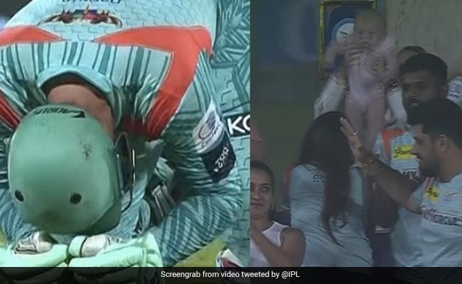Quinton de Kock- KL Rahul: क्विंटन डि कॉक (Quinton de Kock) ने अपने आईपीएल करियर का दूसरा शतक जमाया. 18वे ओवर की चौथी गेंद पर रसेल की गेंद पर डिकॉक ने चौका जमाकर शतक जमा दिया. उन्होंने 59 गेंद पर शतक लगाने का कमाल किया. शतक लगाने के बाद डी कॉक काफी इमोशनल नजर आए. शतक का जश्न मनाने के क्रम में डीकॉक धरती पर बैठ गए और उनके आंखों में इमोशन की झलक दिखाई दे रही थी. यही नहीं दर्शक दीर्घा में बैठी डीकॉक की बीवी साशा हार्ली (quinton de kock wife Sasha Hurly) ने भी इसका जश्न मनाया और साथ ही अपनी बेटी को हाथों में उठाकर डीकॉक के धमाकेदार शतक की खुशी मनाते हुए नजर आईं. सोशल मीडिया पर यह वीडियो फैन्स को खूब पसंद आ रहा है. बता दें कि हाल ही में डिकॉक पिता बने हैं.