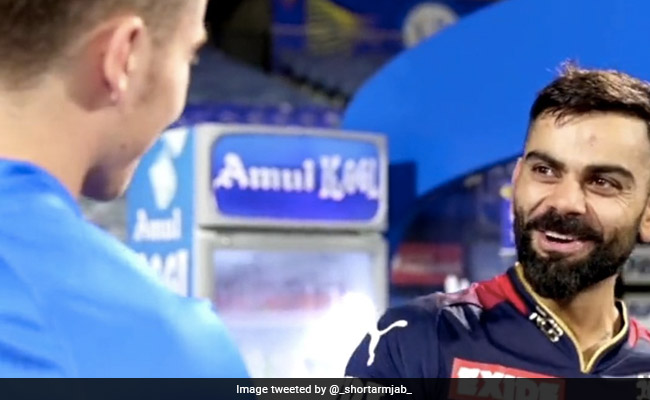 IPL 2022: मुंबई इंडियंस (Mumbai Indians) के खिलाफ मैच में कोहली को बेबी एबी यानि डेवाल्ड ब्रेविस (BABY AB Dewald Brevis) ने LBW आउट कर पवेलियन की राह दिखाई थी. आउट होने के बाद कोहली काफी गुस्से में दिखे थे. दरअसल कोहली अंपायर के फैसले से खफा हो गए थे. यही कारण था कि बल्ले को जमीन पर मारते हुए कोहली पवेलियन लौटे थे. हालांकि यह मैच आरसीबी जीतने में सफल रहा था लेकिन कोहली के गुस्से ने खूब सुर्खियां बटोरी थी. अब मैच के बाद का एक प्यारा वीडियो सामने आया जिसे देखकर फैन्स फूले नहीं समां रहे हैं. दरअसल विराट (Virat Kohli) मैच के बाद बेबी एबी से पहली बार मिले और जिस तरह का रिएक्शन दिया वो खूब वायरल हो रहा है.