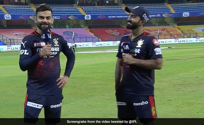 Virat Kohli interviews Dinesh Karthik: दिल्ली कैपिटल्स (Delhi Capitals) के खिलाफ दिनेश कार्तिक (Dinesh Karthik) ने तूफानी पारी खेली और प्लेयर ऑफ द मैच के खिताब से नवाजे गए, कार्तिक ने 34 गेंद पर नाबाद 66 रन की पारी खेली और टीम के स्कोर को 189 तक ले जाने में सफल रहे. यह मैच आरसीबी 16 रन से जीतने में सफल रही. मैच के बाद टीम के पूर्व कप्तान विराट कोहली (Virat kohli) ने प्लेयर ऑफ द मैच का खिताब जीतने वाले कार्तिक का इंटरव्यू किया. आईपीएल के सोशल मीडिया पर दोनों के बीच हुई बातचीत का वीडियो फैन्स के लिए शेयर किया गया है. कोहली ने कार्तिक को लेकर कहा कि, यह सीजन पूरी तरह से कार्तिक का है. वह काफी अच्छा कर रहे हैं और उनसे ऐसी ही उम्मीद आगे भी है. पूर्व कप्तान ने जब कार्तिक से पूछा कि इस सीजन क्या अलग है. इसपर कार्तिक ने कहा कि, मैंने पूरी मेहनत की है. मेरा लक्ष्य भारत के लिए फिर से खेलना है. टी-20 वर्ल्ड कप काफी निकट है और वो भारतीय टीम में शामिल होना चाहते हैं. मैं भारत को टी-20 वर्ल्ड कप जीताना चाहता हूं. मुंबई इंडियंस की लगातार 6 हार से टूटे कप्तान रोहित शर्मा, चौंकाते हुए बोले- कन्फ्यूज्ड हो गया हूं..'