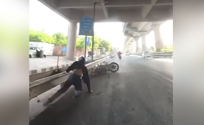 ये वीडियो रविवार सुबह की है और ये हादसा दिल्ली के अर्जन गढ़ मेट्रो स्टेशन के ठीक नीचे हुआ है. वीडियो में देखा जा सकता है कि पीछे से आ रही स्कॉर्पियो गाड़ी ने आगे चल रही बाइक को जानबूझकर टक्कर मारी. टक्कर लगते ही बाइक सवार घसीटते हुए डिवाइडर से टकरा गया. हालांकि बाइक सवार को कोई चोट नहीं आई और वो तुरंत खड़ा हो गया.