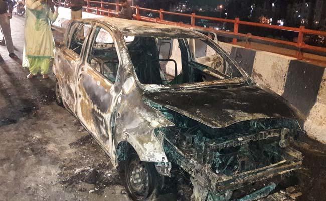 दिल्ली के शेखसराय में बीच सड़क कार पर लगी आग, ड्राइवर की जलकर मौत