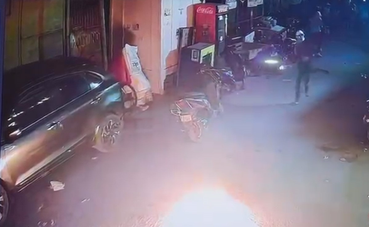 सीसीटीवी कैमरे में फायरिंग और बम फेंकने की घटना रिकॉर्ड हो गई है.