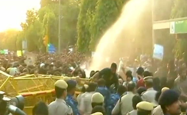जेएनयू के छात्रों को पुलिस ने आईएनए के पास रोका और उनपर वाटर कैनन का भी इस्तेमाल किया.