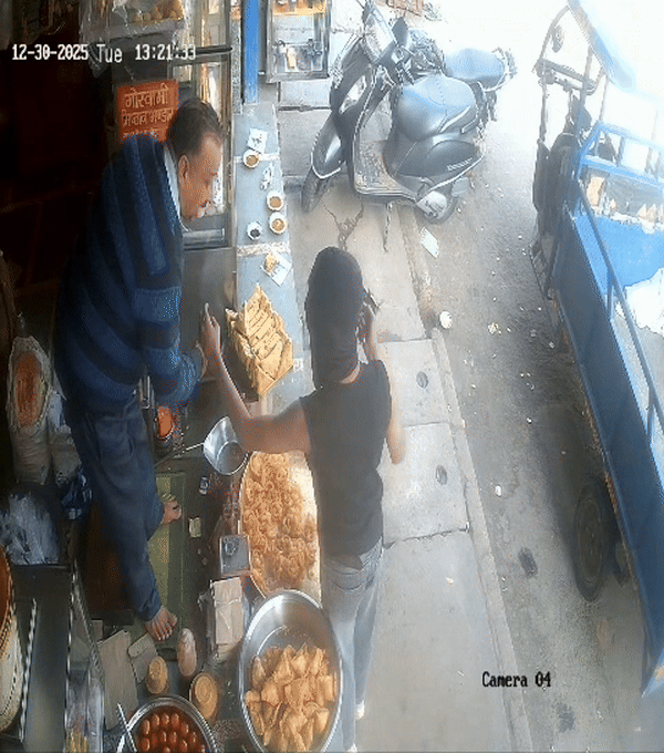 नकाबपोश ने दुकानदार को गोली मारने की धमकी दी, लेकिन निडर दुकानदार उससे लगातार ये सब न करने की अपील करता दिखा. उसने पस्तौल से दुकानदार पर फिर से हमला कर दिया. नकाबपोश ने गुस्से में दुकान में रखी समोसे की परात में जोरदार हाथ मारा और वहां से भागकर गुस्सा किसी राहगीर पर उतार दिया.
